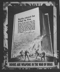 This poster was created as part of America’s response to Nazi book burnings. At the same time the Armed Services Editions of books for soldiers were created. Check out The Art of Manliness blog to learn the history of this movement.