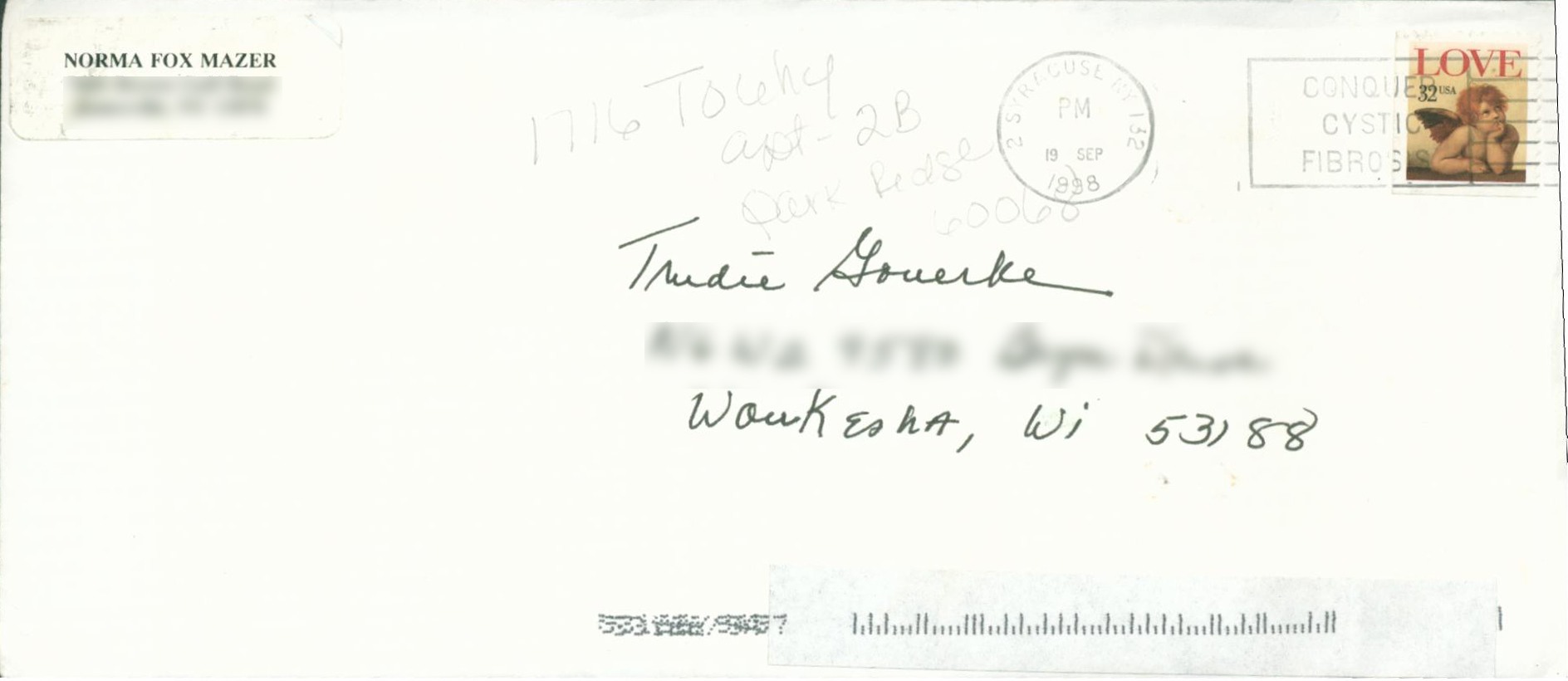 One of the things that has influenced my life most has been a half hour of a stranger’s time and a thirty-two-cent stamp. It all goes back to middle school when—just as Joseph Heller said—“I wanted to be a writer when I was in sixth grade—of course I wanted to be one without working at it.” Back then, if I wasn’t writing or reading, I was probably asleep. I had read every book by Norma Fox Mazer I could find. The characters in her books spoke to me, and I often wondered how she knew what I was thinking. When I came across her address one day, I wrote a letter to her, carefully picking each work, never expecting an answer back. Two weeks later the long white envelope arrived. Ms. Mazer explained to me the details of her books, told me what inspired her, and answered my questions about writing. Most importantly, she instilled in me confidence that someday I can be an author as popular as she is, if I work hard enough at it and am truly determined. I reread the letter until the paper became thin and turned a milky yellow…